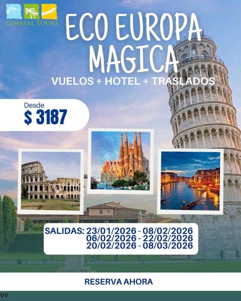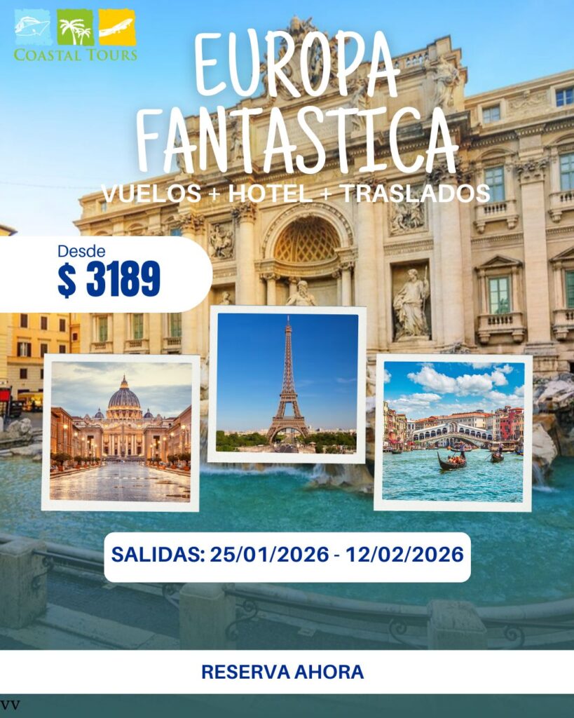 Despide el año recorriendo las ciudades más icónicas del continente europeo. Vive la magia de Madrid, París, Venecia, Roma y Barcelona en un solo viaje lleno de cultura, historia y encanto.