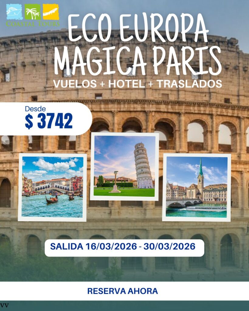 Un viaje fascinante desde París hasta Madrid, recorriendo las joyas de Europa: Venecia, Florencia, Roma, Barcelona y más.